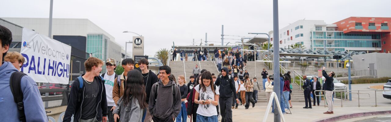 Free public transit. Skip the drop-off and parking queues and take public transit. SMMUSD and Los Angeles Unified School District (LAUSD) participate in the regional GoPass program, which provides free transit rides to all K-12 students. This includes rides on Big Blue Bus and LA Metro trains and buses. With a registered GoPass, students at participating schools can ride Big Blue Bus and LA Metro to and from school or for any other purpose, including on weekends. Contact your school to obtain your pass and use the Transit app to plan your trip. Learn more about riding Big Blue Bus and LA Metro to school.