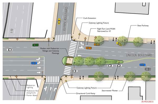 These improvements are part of the Lincoln Neighborhood Corridor Plan (LiNC)—a comprehensive framework for the overall enhancement of Lincoln Boulevard that weaves together physical design improvements to the streetscape with policies and programs that balance vehicle flow and demand. LiNC will create a livable street environment.