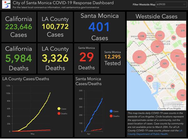 We’ve now surpassed 10 million cases of COVID-19 worldwide and yesterday, Los Angeles County had its highest daily case recording since the start of the pandemic. Hospitalization rates are also rising. Governor Gavin Newsom ordered the immediate closure of all bars at noon on Sunday in seven counties, including Los Angeles. LA County is now projecting the possibility of running out of hospital beds in two to three weeks. Likewise, the number of intensive care unit beds could be exhausted sometime in July. Santa Monica’s case count has surpassed 400. These benchmarks are a signal that we are very much still in this public health crisis.