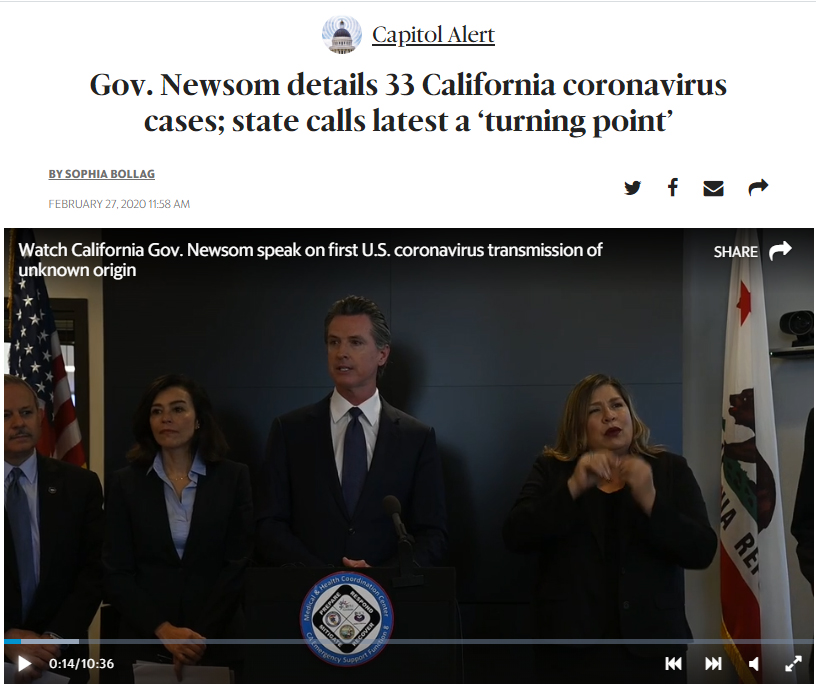 This morning, state health officials and Governor Gavin Newsom provided a public briefing on the state’s response to novel coronavirus, also known as COVID-19.
