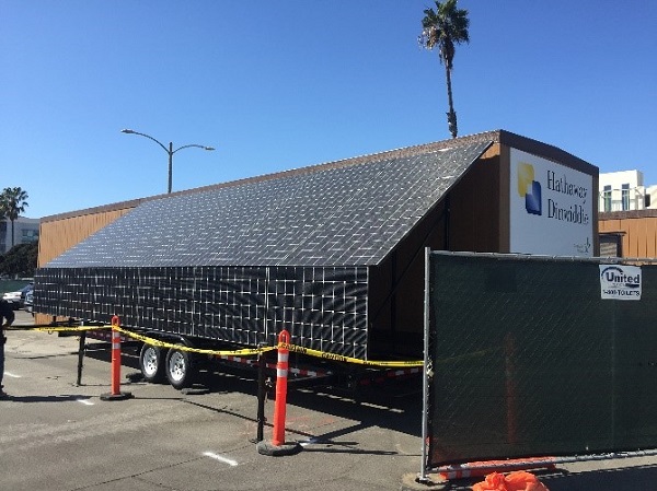In keeping with the Living Building Challenge requirement of net-zero energy buildings, the contractor, Hathaway Dinwiddie, purchased (60) 335-watt solar panels and approximately 60 kWh of batteries to power their construction trailers while on the job. There are enough batteries to power the construction trailers for 4 days with no sun. Fortunately, here in Santa Monica we get plenty of daily sun to keep the batteries adequately charged and the construction trailers fully functional.