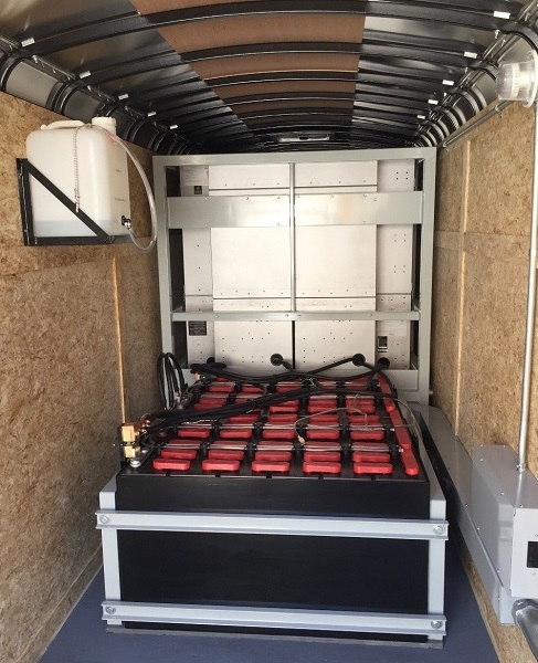 The 20.1 kW DC system was brought in from an assembly plant in Atascadero, CA. The enclosed trailer that houses the solar inverters, charge controllers, and batteries also has an electric sub-panel for the construction trailers to interconnect. The solution is safe, reliable, and on top of that, it does not run out of gas, require oil, and is completely silent.