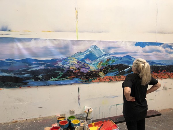 When she paints, Yvette, enters the painting. She wanders the paths and follows the map of her imagination, exploring the landscape she is creating in real time. “My hope is that passersby will come across this art work on their daily jog or as they stroll by the water and be drawn into the work as I am when I create it. I want them to linger in the landscape a bit and experience the restorative power of art.”