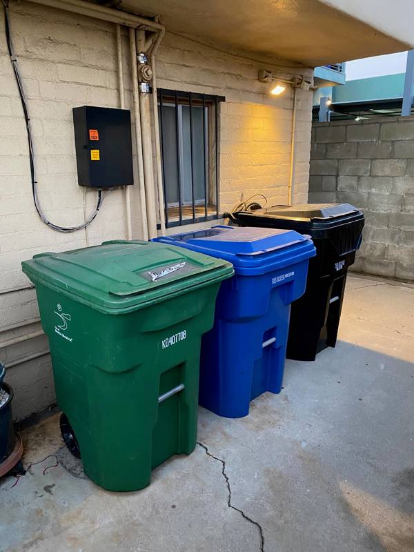 Under the ordinance, all Santa Monica single- and multi-family households and commercial customers are required to separate waste using a three-bin system: black for refuse, blue for non-organics recycling such as cardboards and bottles, and green for organics recycling beginning January 1, 2022. While many customers have three bins, there are some that do not have a green bin, commonly known as the bin for yard waste. The green bin serves a wider use for all organics, which means food waste, food-soiled paper waste that is mixed in with food waste, and green waste (e.g., landscape and yard waste).
