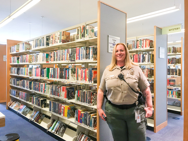 As a library services officer, Lynnette was a natural person to approach with this question. She’s warm and approachable, but her dark beige uniform and badge give her an air of authority. She’s also highly visible throughout the library, one of a team of officers tasked with handling safety and security. You can find her making the rounds or standing at the doors as she greets library patrons and ensures anyone entering is abiding by the rules of the library. In other words, she’s a familiar face, one who seems likely to know exactly what was going on.